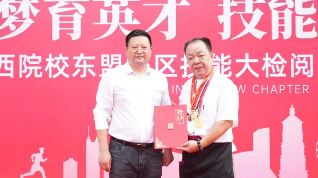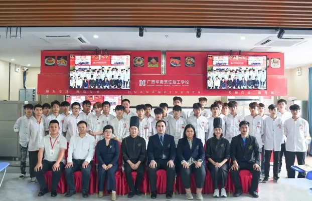 在 8 月 29 日广西华南烹饪技工学校的技能大检阅暨迎新活动现场,一场美食与技艺的盛宴精彩上演。众多嘉宾与师生齐聚一堂,共同见证了烹饪技能的魅力绽放,而在这场活动中,玉林蒲塘粉非遗传承人黄健传大师的亮相,