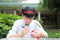 她叫涂然,来自广西河池天峨县,今年20岁,目前在2017级两年西餐大厨1班学习。曾经的她是一名多才多艺的艺术生,学的是播音主持专业。面对小编的采访,面前的她目光自信,落落大方,吐词标准,这个戴着眼镜的女孩子