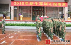 近日,广西华南烹饪学校2015级新生军训汇演暨表彰大会在学校综合运动场隆重举行,学校校区教务主任赖学学、后勤部主任万家国、汇演教官等相关领导老师出席了检阅仪式并观看了精彩的汇报表演。 2015年新生军训汇演现
