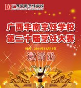 为弘扬烹饪文化,发展桂菜产业,推动桂菜创新,经研究决定于2014年12月18日举办广西华南烹饪学校第二十届烹饪大赛现将有关事项通知如下: 一、大赛宗旨 以继承、发扬、开拓、创新为宗旨,体现公开、公平、公正。通过