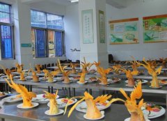 2013年8月16日上午,在紧张欢快的氛围当中广西华南烹饪学校两年制大厨精英115班在大学路校区迎来了他们的毕业考试。本次考试内容包括《像形拼盘制作》、《雕刻技能》、《刀工技能》、《热菜技能》以及《中式烹调师中