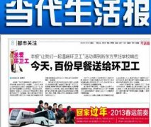 让我们一起温暖环卫工 我们打算连续 4 天上路给环卫工人派发早餐,给他们送去一份温暖。 1 月 8 日,本报 4 、 5 版刊发的《让我们一起温暖环卫工》一文,发起了用行动温暖环卫工的号召。号召发出当天,陆续有一些爱