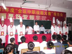 4月15日晚,我校烹饪事业部2011年度全区中职技能比赛报告会在实操楼六楼多功能教室举行。报告会以总结经验,分享心得为主题,校领导、各班主任及10届、11届的同学出席了报告会。 报告会上,此次参赛的带队老师谈了比