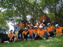 华南厨师烹饪培训学校活动中师生合影 为积极响应学校倡导的推进以爱为核心的人文教育,2011年5月28日,由司胜东、彭燕萍两位老师牵头,组织了25名新老学生会成员前往武鸣县花花大世界游玩。希望通过集体活动的开展增