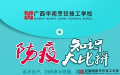 疫情前线激战正酣,全国紧急动员。广西华南烹饪技工学校也积极应战,全面投入到了宣传战役中来。与此同时,学校值班老师每天都会对校园、教室、办公室、食堂、宿舍等进行严格的消毒工作,保证无缝隙无死角,让病毒无