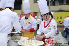 2017年12月22日,一年一度的冬至如期而至。上午9点广西华南烹饪技工学校暖心冬至包饺子比赛准备开始了。参赛的队伍陆续到来,在学生会工作人员的细心指导下签到,并有秩序的站好。这时,工作人员在各桌轮流讲述比赛
